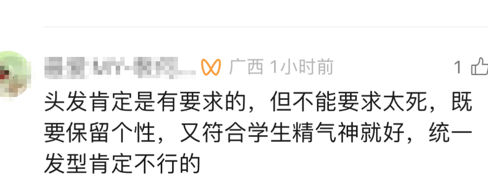 至于新的发型管理方案进展,该工作人员表示,学校正在学生、家长和老师间广泛收集意见建议,因为涉及的群体比较广,没那么快。“一方面要规范学生的仪容仪表,展现积极向上的风貌。‘没有规矩不成方圆’,要是全部放开,下一步学生烫发染发,怎么处理?另一方面也要考虑学生和家长的实际情况和个性化需求”。