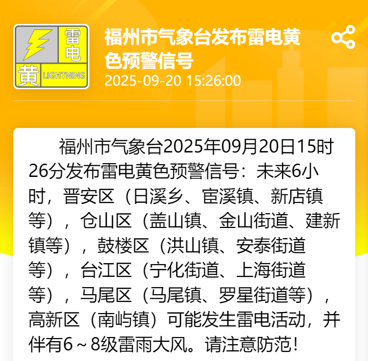 雷电黄色预警