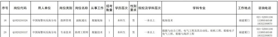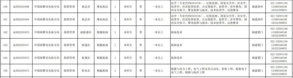 日前,中国海警发布公告直接选拔招录警官。其中,这些岗位工作地点在福建↓↓