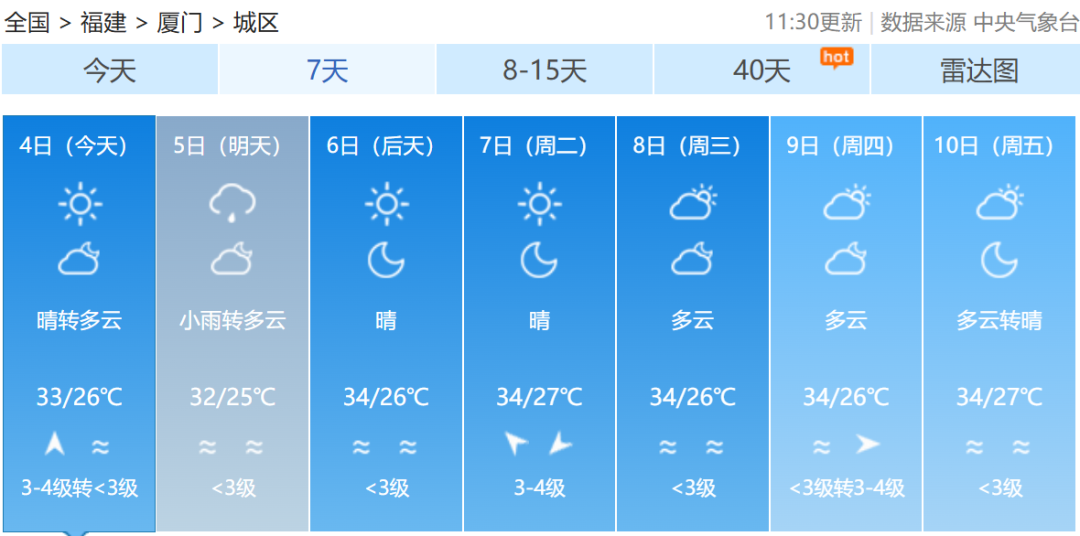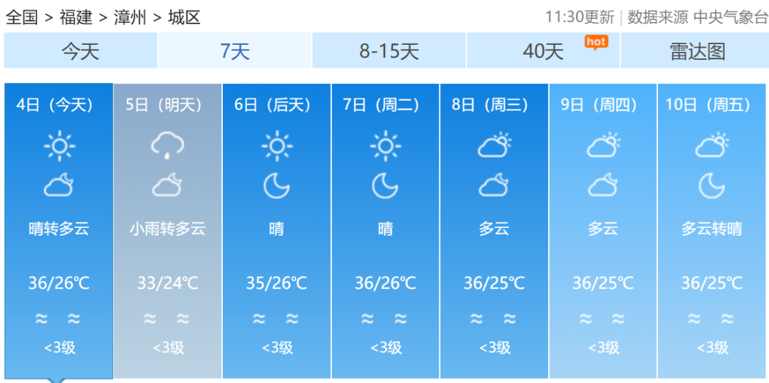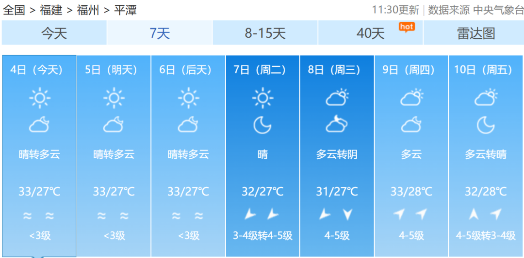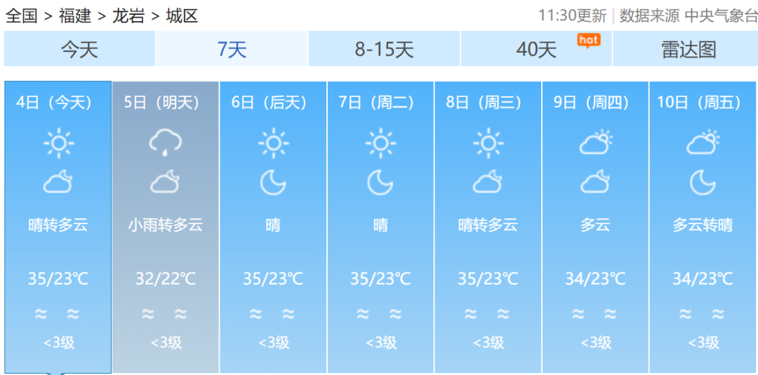 福建各地一周天气预报↓