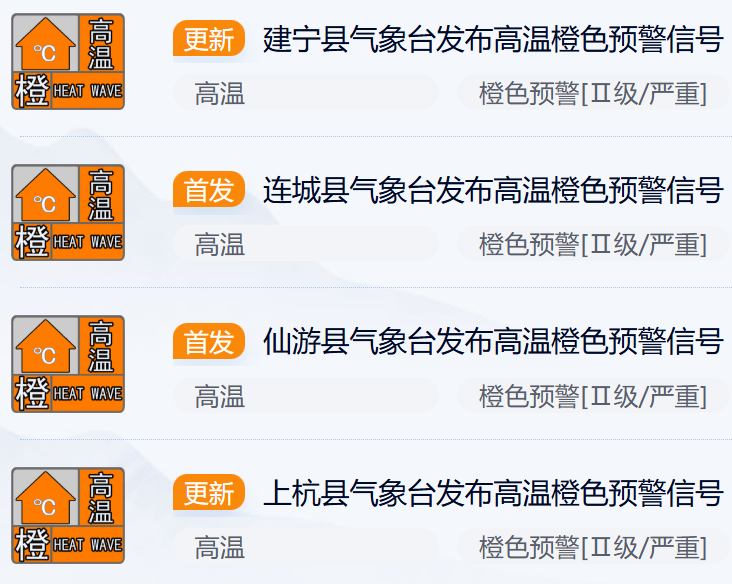 福建多地发布高温橙色预警