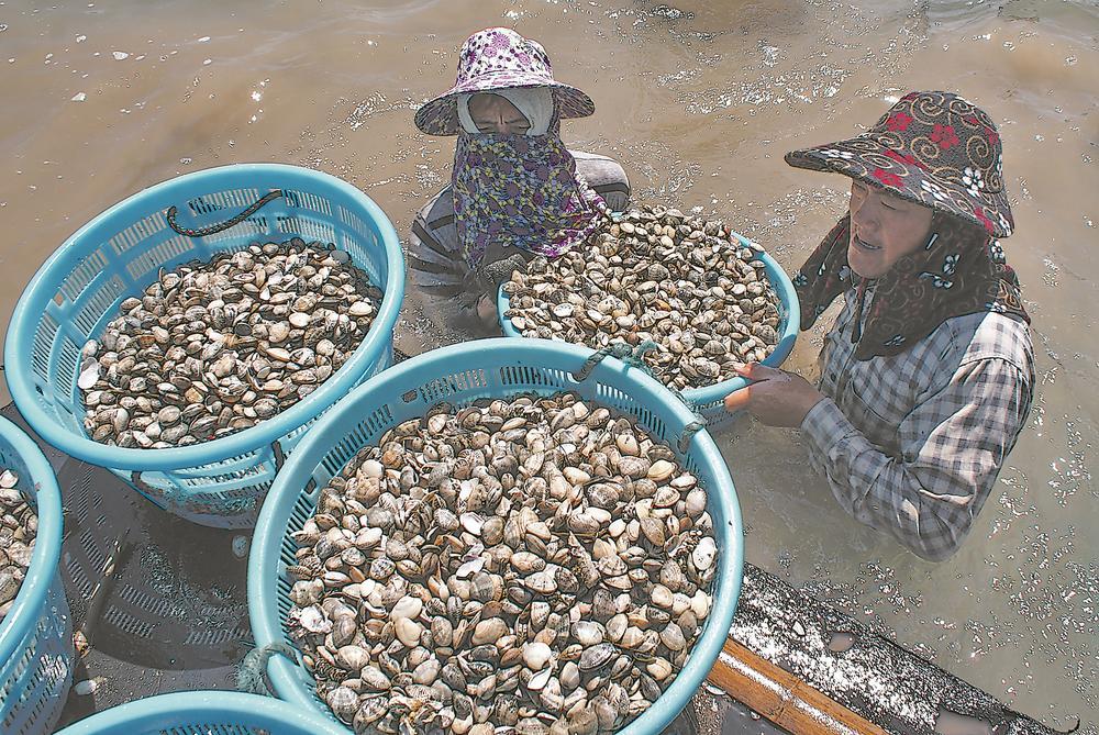 清洗好的花蛤正在装船运输。陈德新 摄