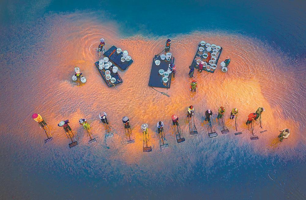 连江滩涂上收蛤作业的场景 陈伟 摄