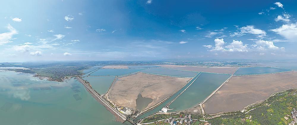位于福清东壁岛的万亩花蛤大水面人工育苗基地。记者 王毅 摄