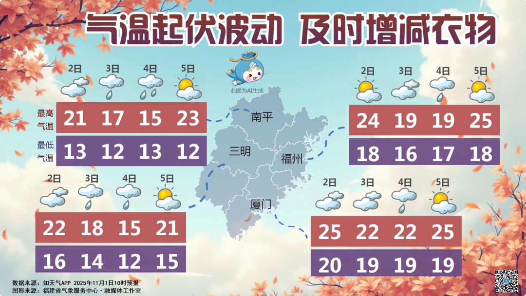 今天(11月1日)全省多云到阴,局部有小雨,好天气的周末,不论是洗洗晒晒,还是出门赏秋,都是非常舒适宜人的。