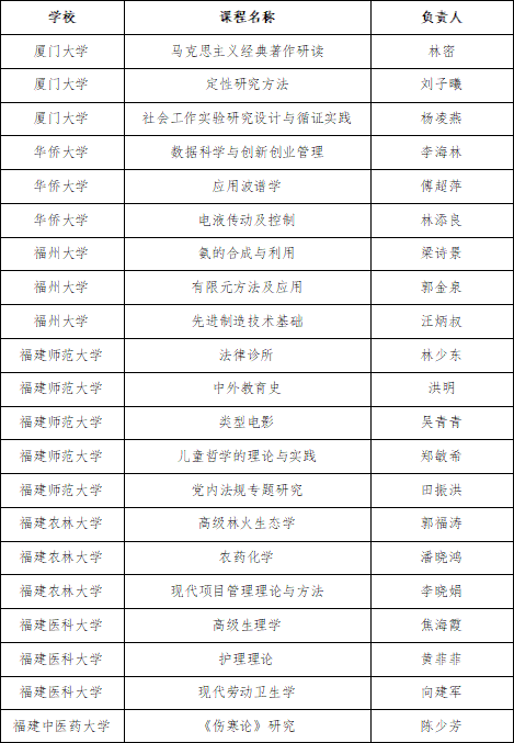 根据《福建省学位委员会办公室关于开展研究生教育精品课程等项目建设的通知》,我办组织开展了第四批省级研究生教育精品课程、研究生优秀教学案例、产教融合研究生联合培养基地等3个项目的申报及评审工作。现将拟立项名单予以公示(名单详见附件)。