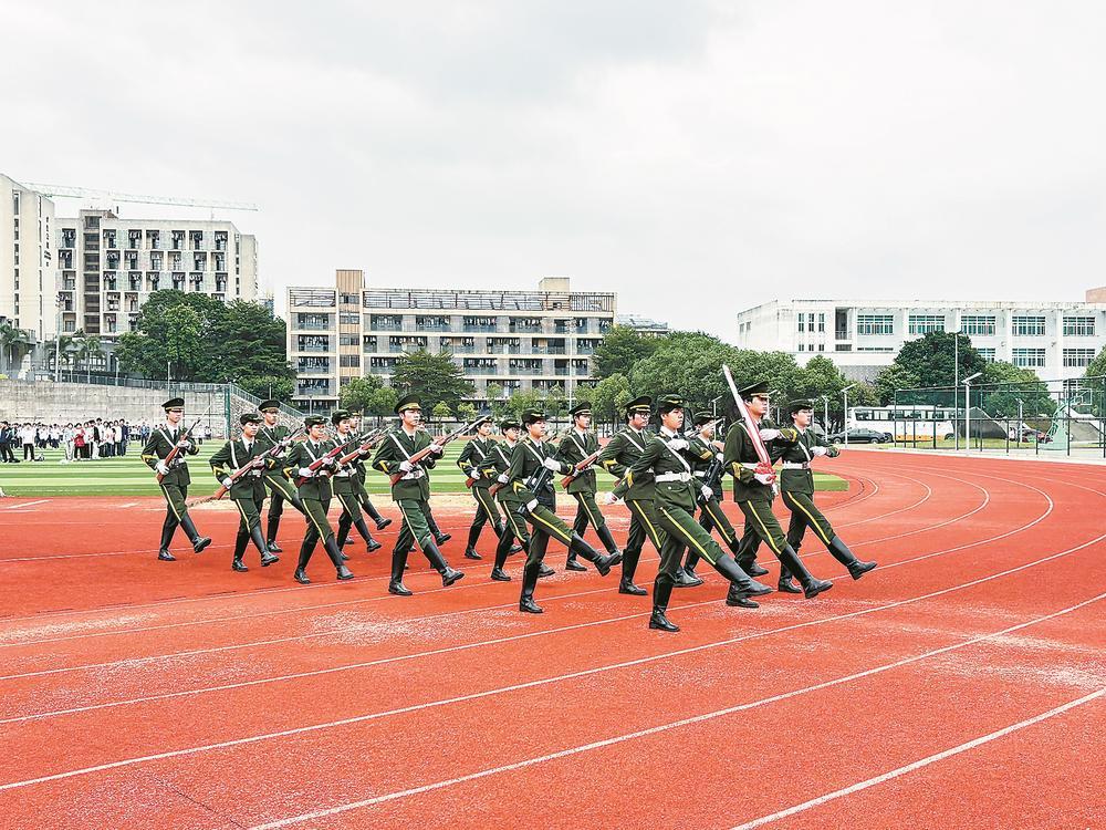 福州旅游职业中专学校的学生在国旗护卫队训练中学会团队精神。