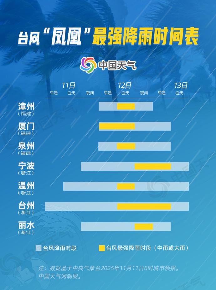 11日,台湾浅滩和闽南渔场最大风力10~12级、阵风12~14级;闽中渔场和中部沿海海区9~11级、阵风11~13级; 闽东渔场中西部和北部沿海、南部沿海海区8~10级、阵风10~12级。