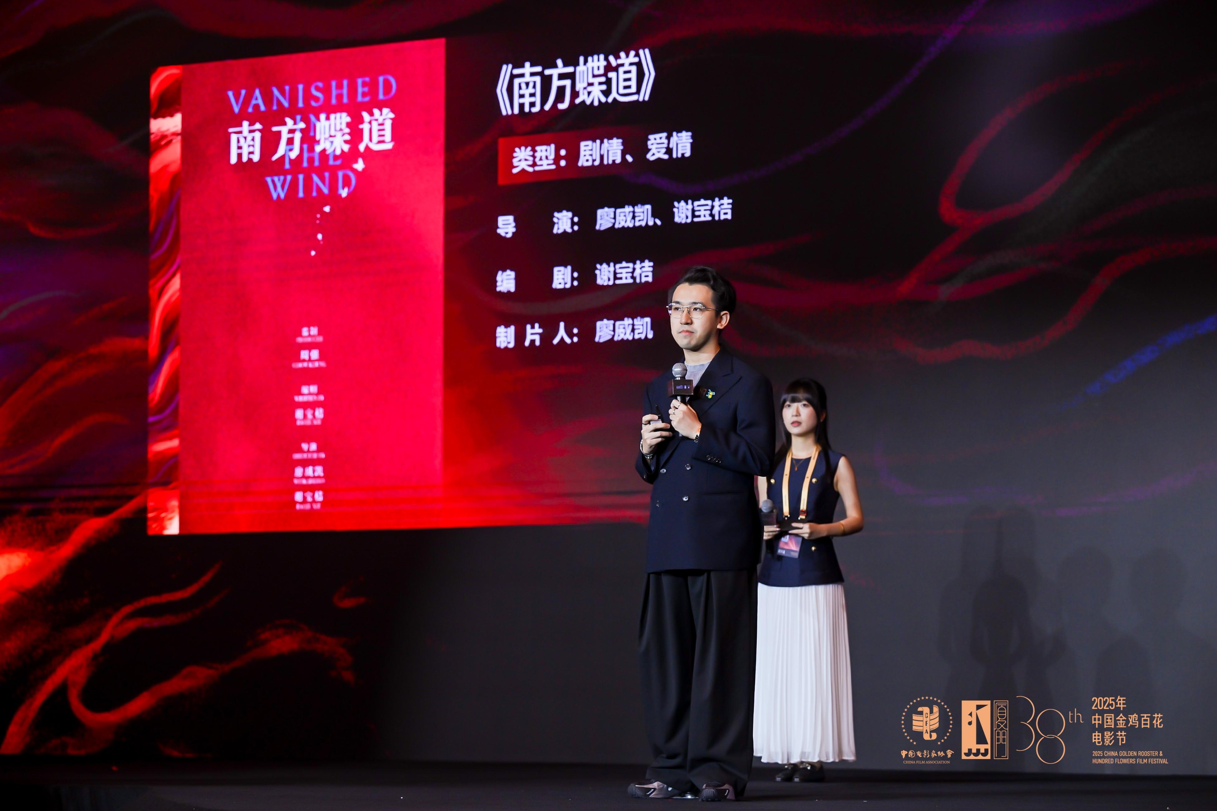 在年轻一代影人中,厦门籍新锐导演廖威凯是值得一提的代表。2024年金鸡海峡两岸暨港澳青年短片季的舞台上,他的悬疑短片《愁绪未到》完成了“厦门创作、厦门拍摄、厦门制作、厦门入围”的完美闭环,也入围了IM两岸青年影展主竞赛单元与金鸡青年短片季。他从厦门一中高中毕业后赴美国爱默生学院求学,如今担任爱奇艺电影工作室的执行制片人。12日下午,他担任导演、制片的长片《南方蝶道》参加第七届金鸡电影创投大会,该剧成为主单元终极路演入围项目并成功路演,这位青年导演正带着家乡的滋养与期许,在光影道路上稳步前行。