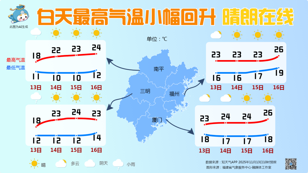 未来三天,福建气温波动明显,但总体仍以偏高为主。