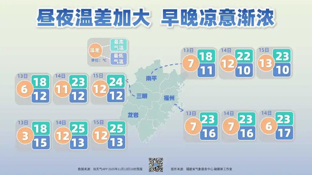 以省会福州为例,白天最高气温回升至23℃左右。但需要注意的是,夜晨最低气温仍在16℃上下,昼夜温差较大,早晚凉意渐浓,朋友们需关注临近气温预报,及时增减衣物,谨防感冒。
