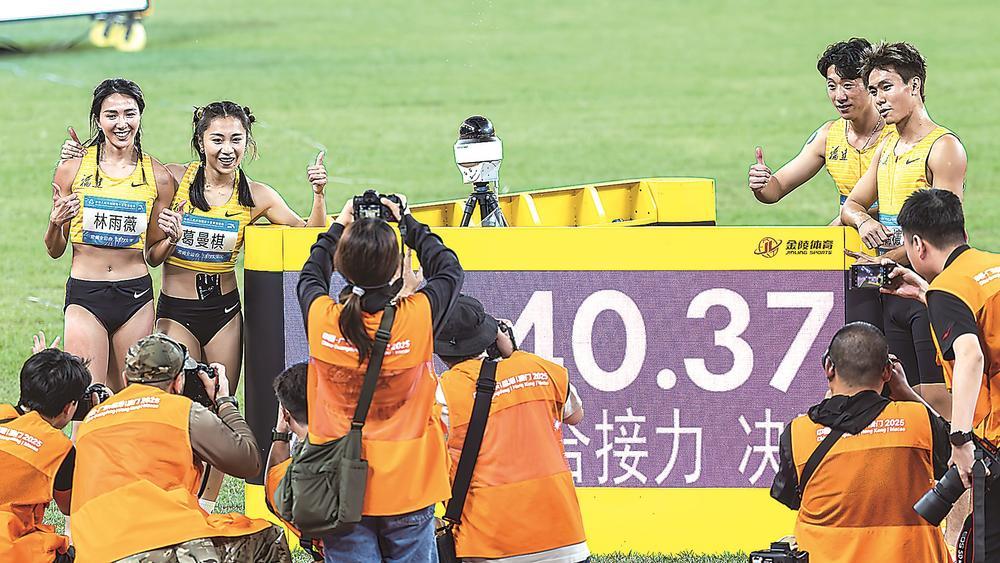 同样在本届全运会新增的田径4×100米混合接力项目上,由林雨薇、葛曼棋、肖远鹏、何锦櫶组成的福建队夺得冠军,创造了40秒37的今年世界第二好成绩。