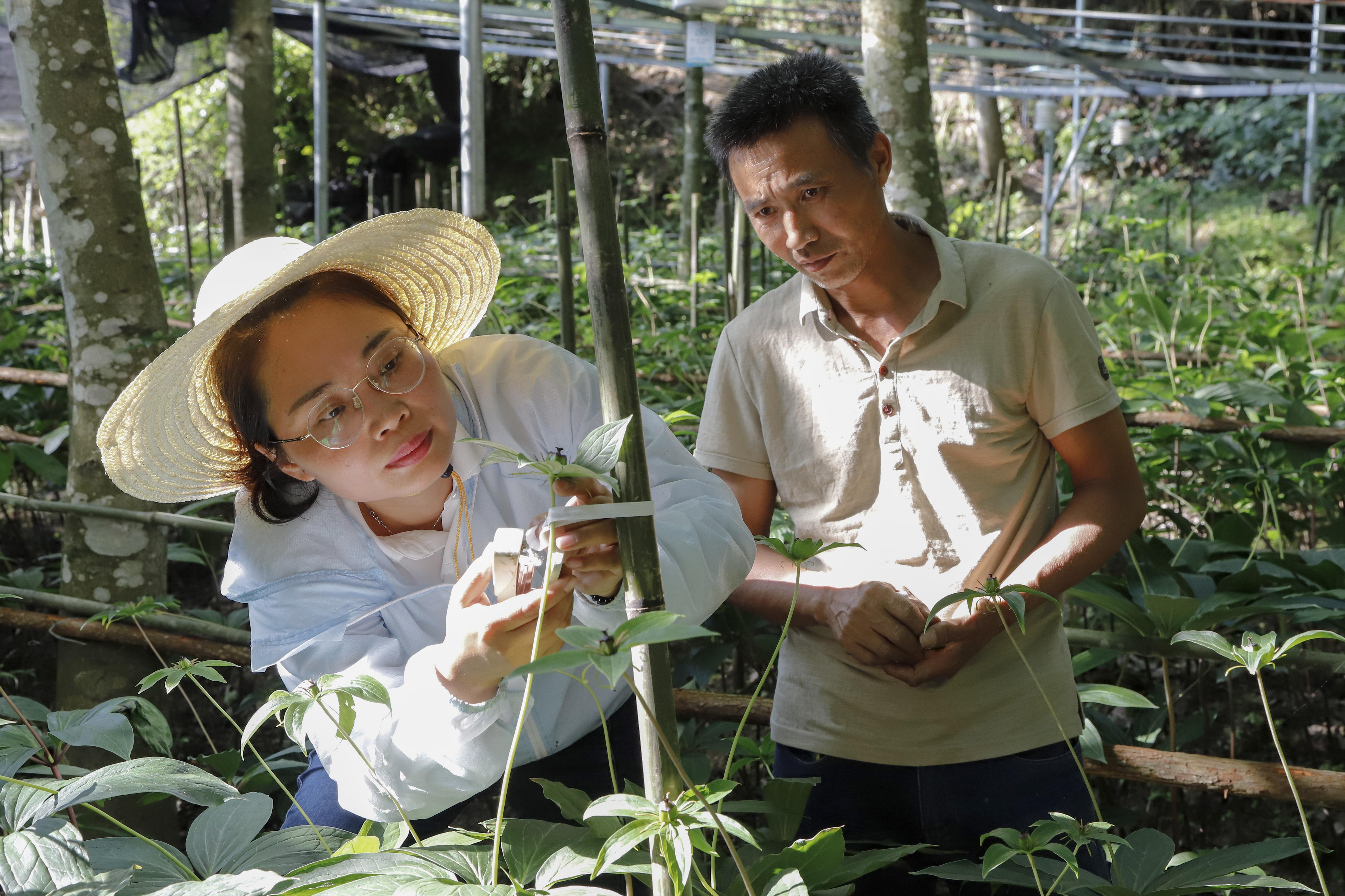 科特派苏海兰在光泽中药材母本培育基地察看作物生长情况。(资料图)