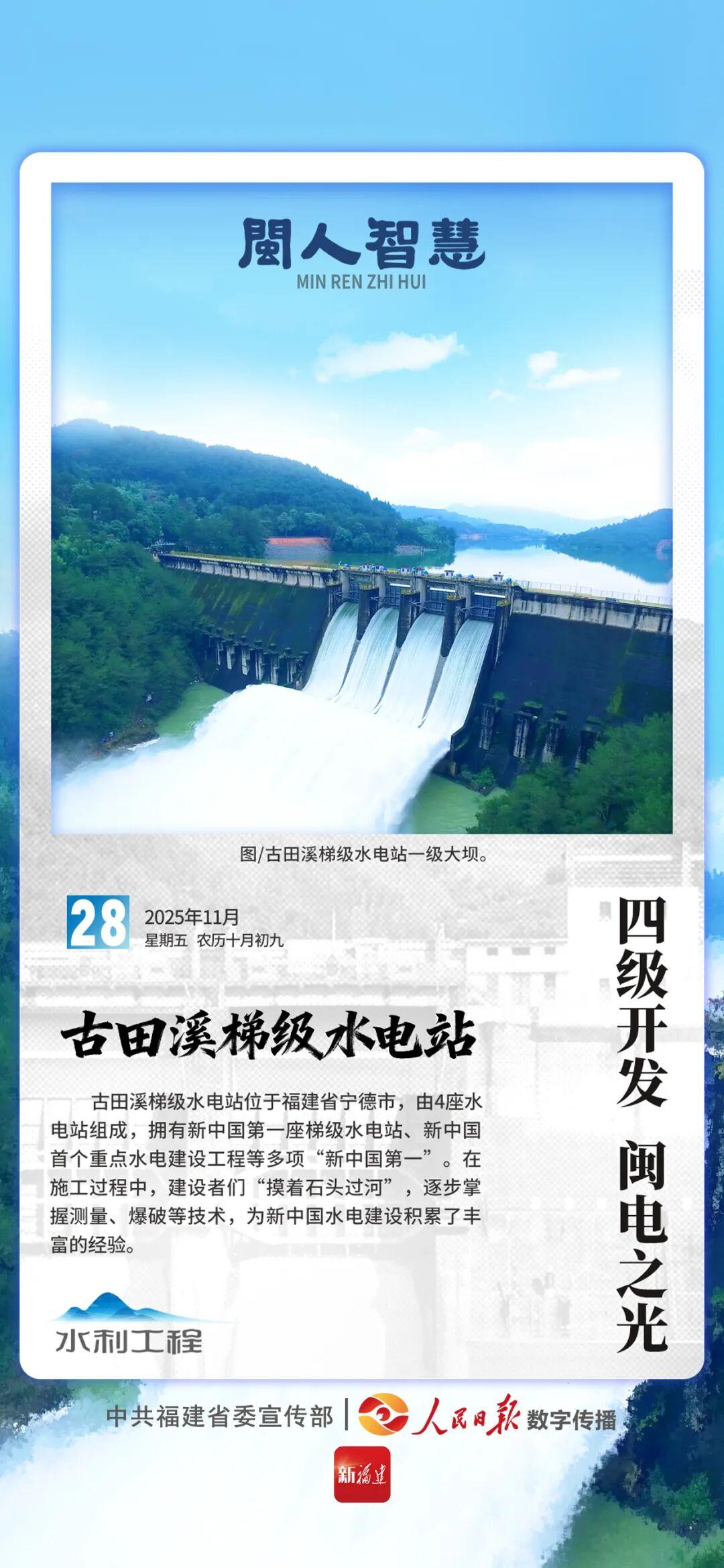 古田溪梯级水电站位于福建省宁德市,由4座水电站组成,拥有新中国第一座梯级水电站、新中国首个重点水电建设工程等多项“新中国第一”。在施工过程中,建设者们“摸着石头过河”,逐步掌握测量、爆破等技术,为新中国水电建设积累了丰富的经验。