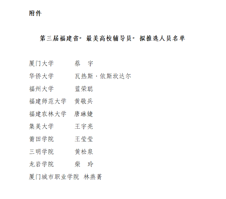 附件:第三届福建省“最美高校辅导员”拟推选人员名单