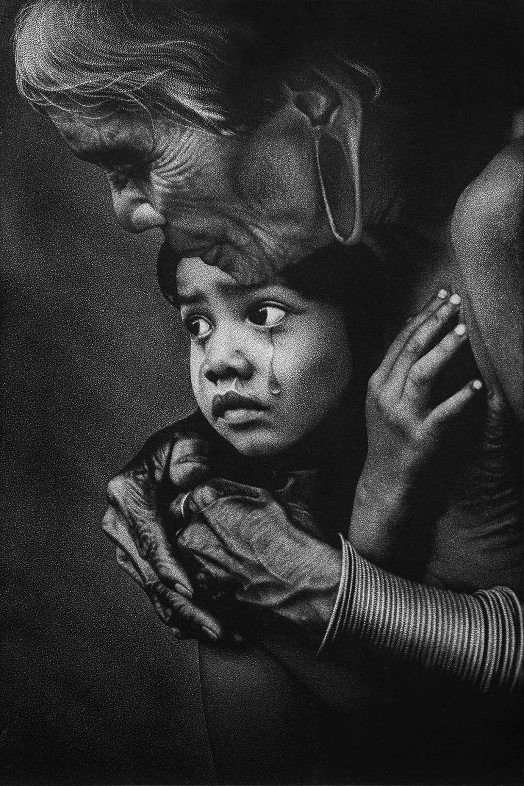 影雕作品《盼》是李亚华的得意之作。灰色与白色的点融合成孩子脸上的一滴眼泪,停留在石面上。“这需要灵活掌握钢錾敲击的力度,力度越重,颜色越浅,力度越轻,颜色则越深,就这么一点点敲击出黑白灰的渐变,形成立体的效果。”李亚华说。