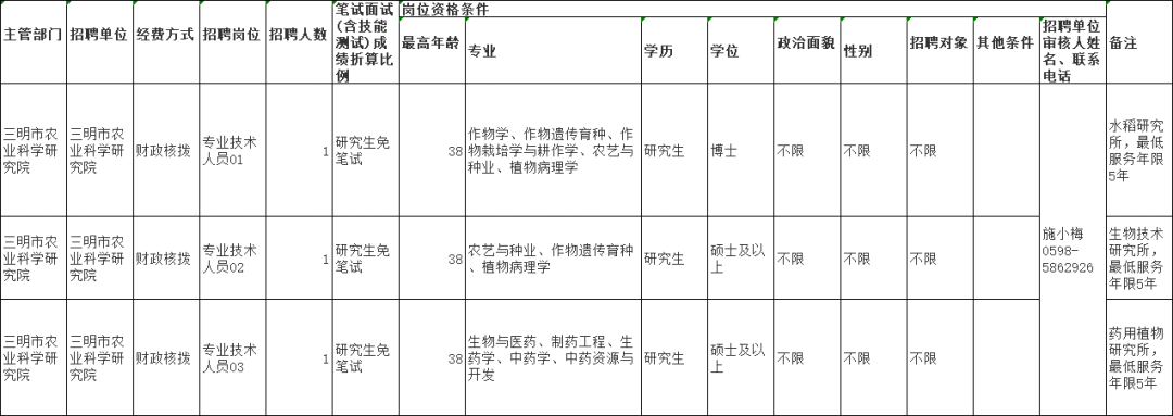 三明市农业科学研究院关于2025年公开招聘专业技术人员的通告