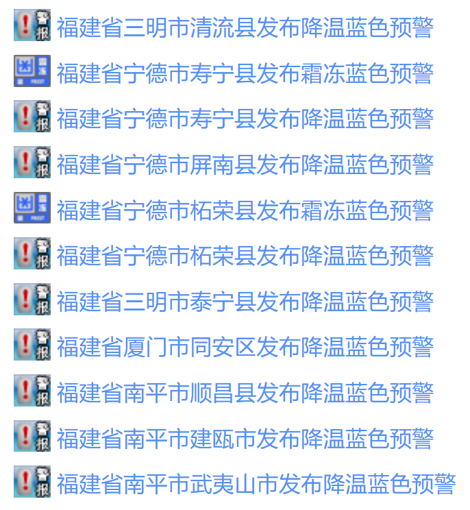 冷空气还会在海上掀起波澜,福建省气象台今日7时发布海上大风警报,截至目前福建多地发布降温、霜冻蓝色预警。