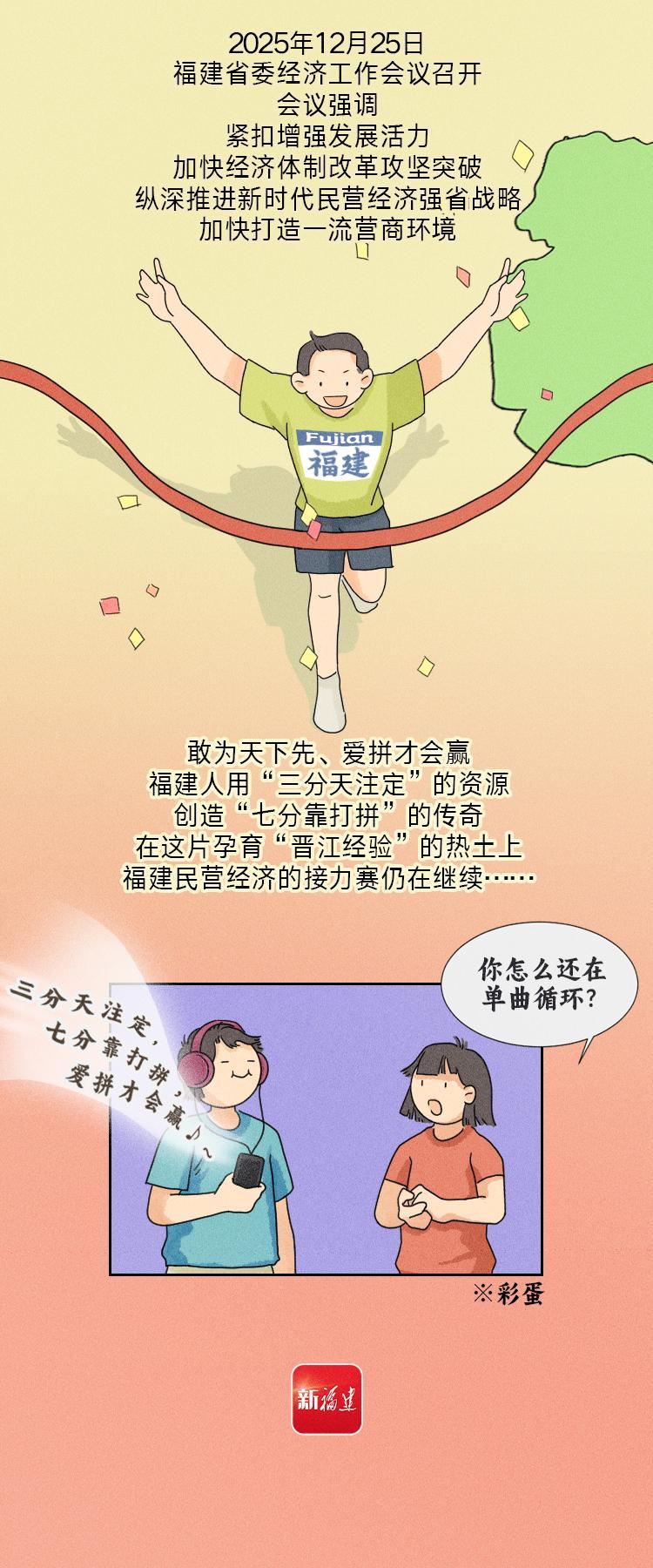 敢为人先,爱拼会赢。2025年1月初,福建首次召开全省优化营商环境大会,强调要在推进一流营商环境建设上奋勇争先。2025年,福建出台首部优化营商环境中长期规划,推进“高效办成一件事”等改革,截至11月底,全省实有经营主体771.1万户,八闽大地营商环境持续优化升级。