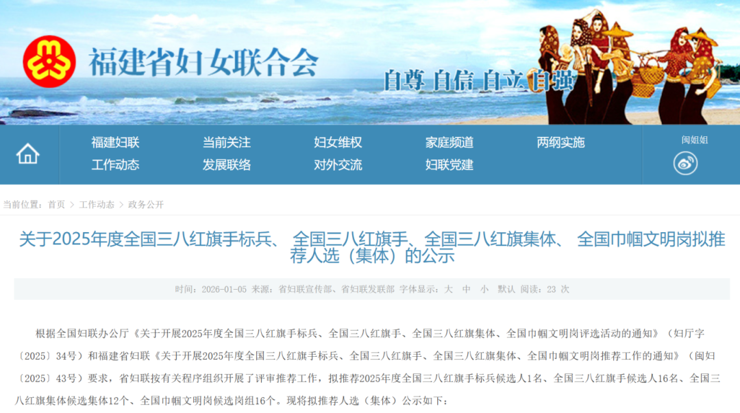 福建省妇女联合会发布公示