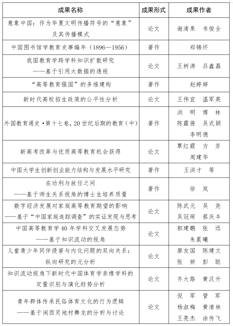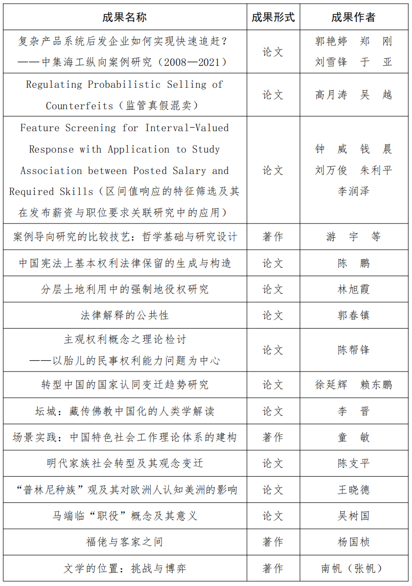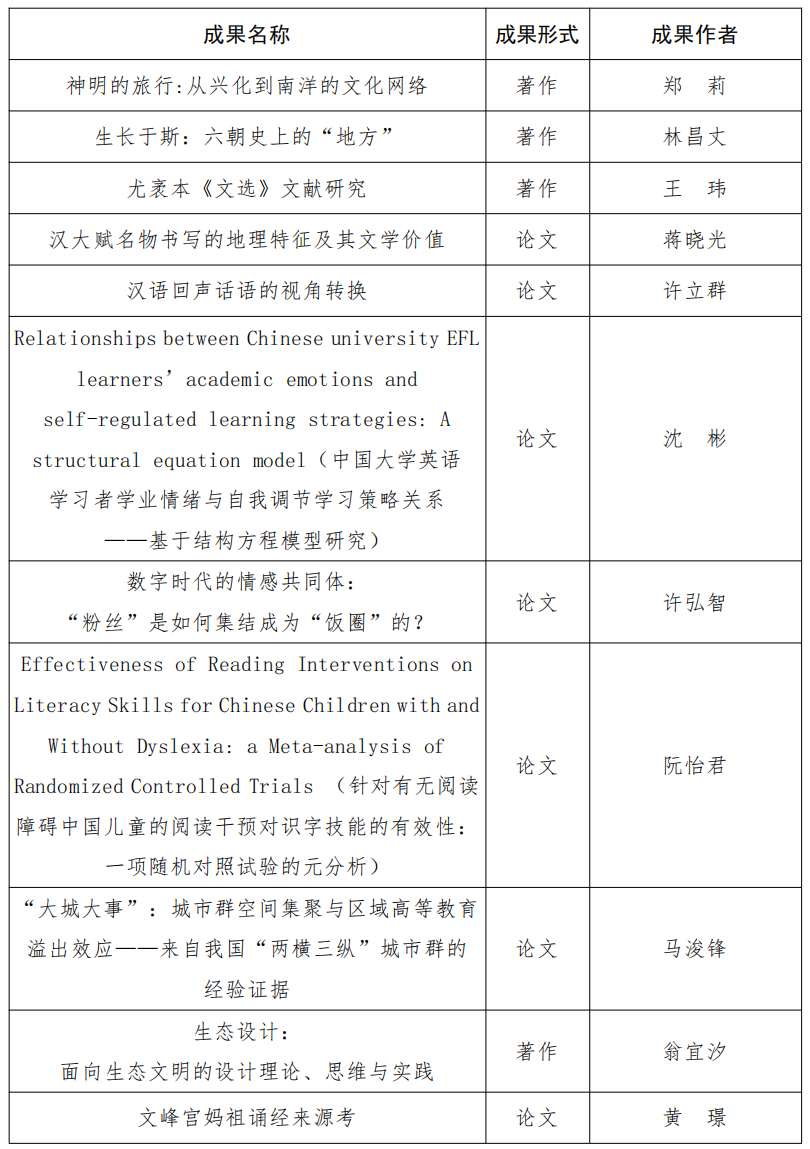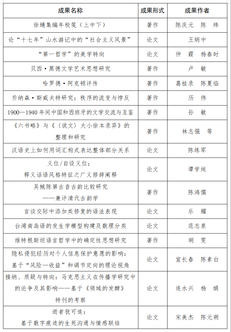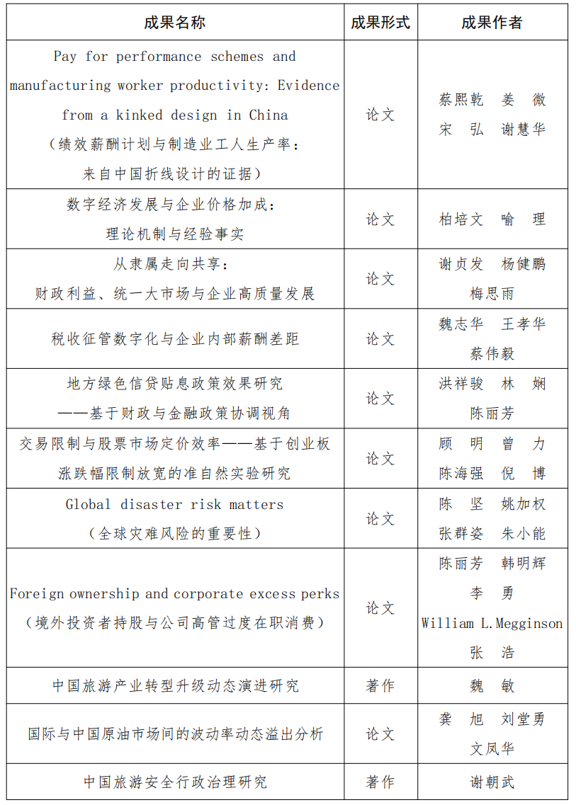 根据《福建省社会科学优秀成果奖励办法》,经研究,决定授予《新时代中国民营经济高质量发展机制研究》等30项成果福建省第十六届社会科学优秀成果一等奖,《国家治理现代化中的社会协商治理研究》等70项成果福建省第十六届社会科学优秀成果二等奖,《“新的文化生命体”的历史唯物主义内涵》等150项成果福建省第十六届社会科学优秀成果三等奖,《数字技术赋能生态文明建设:理论基础、作用机理与实现路径》等30项成果福建省第十六届社会科学优秀成果青年佳作奖。