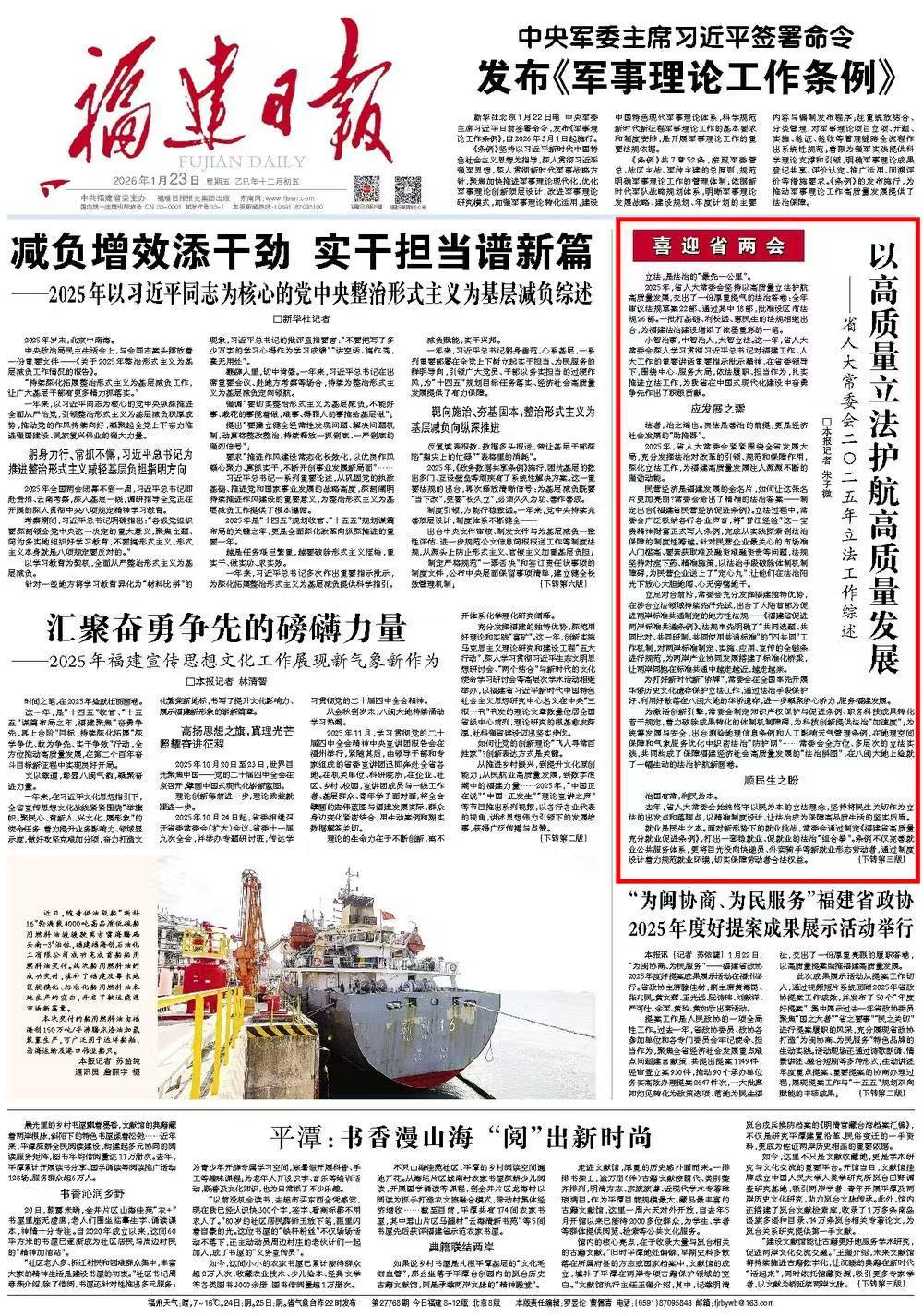 《福建日报》2026年1月23日第01版