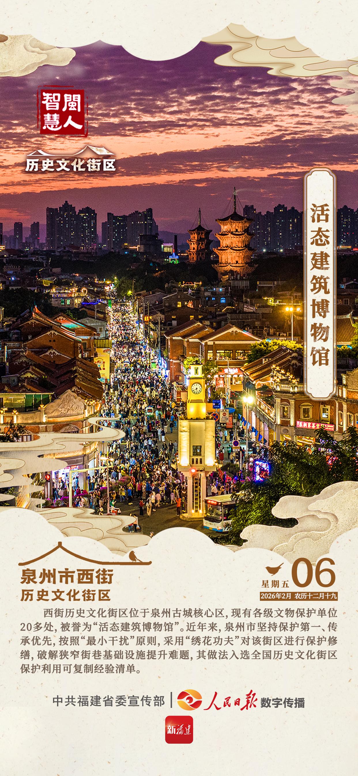 西街历史文化街区位于泉州古城核心区,现有各级文物保护单位20多处,被誉为“活态建筑博物馆”。近年来,泉州市坚持保护第一、传承优先,按照“最小干扰”原则,采用“绣花功夫”对该街区进行保护修缮,破解狭窄街巷基础设施提升难题,其做法入选全国历史文化街区保护利用可复制经验清单。