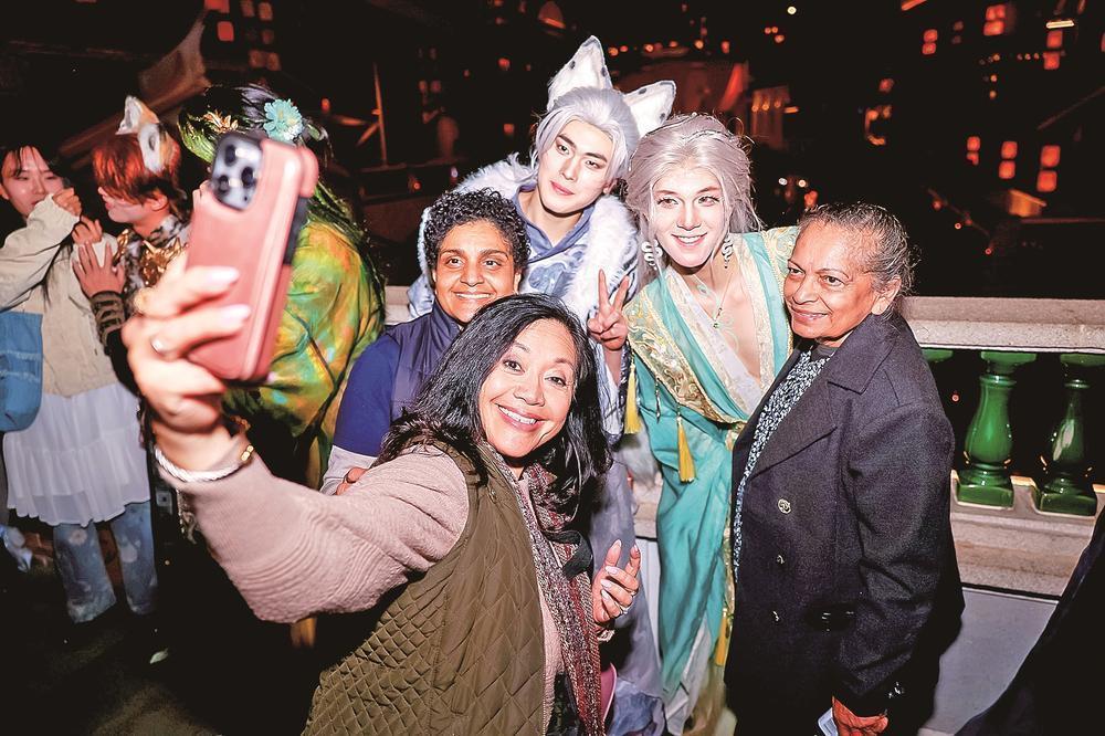 春节期间,外国游客在屿见闽南景区与工作人员互动。(受访者供图)