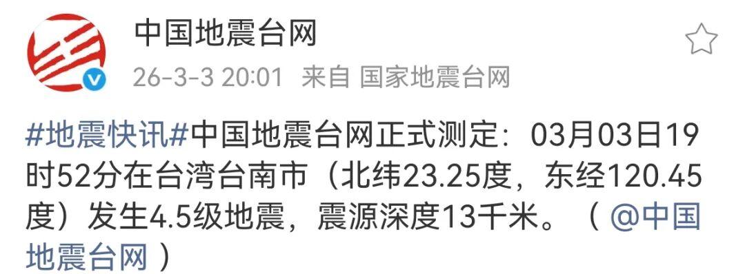刚刚!台湾地震了!