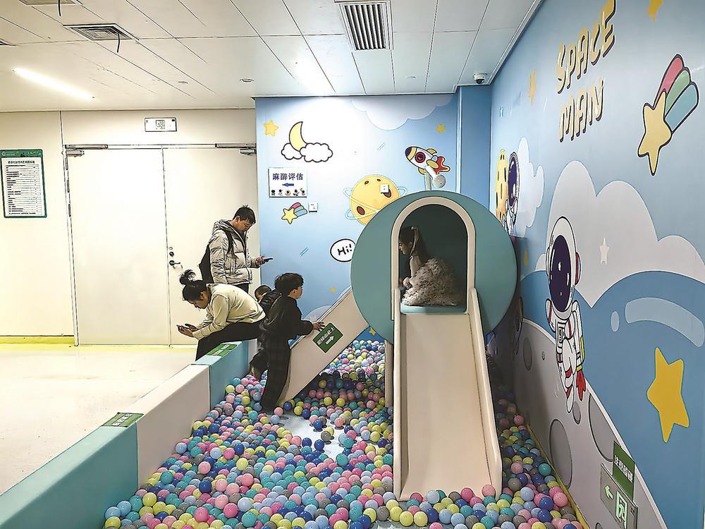 “即便一个人带孩子去医院,我也能轻松上阵。”赵芸说,医院适儿化程度很高,门诊候诊区环境温馨、整洁,还提供免费直饮水以方便家长给孩子泡奶温奶,特别是配备了家庭卫生间,即便是妈妈带着儿子如厕也很方便。“而且,还有绘本阅读、体育锻炼等娱乐空间,彬彬每次来都会和小伙伴一起玩跳房子,候诊时就不会觉得无聊了。”