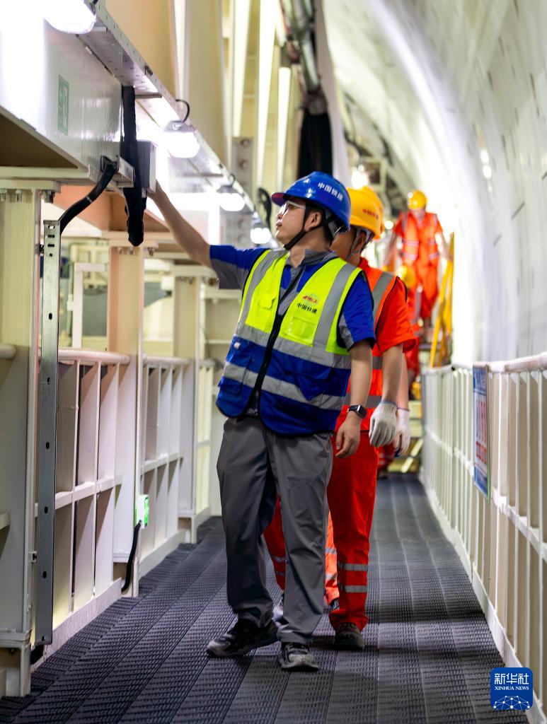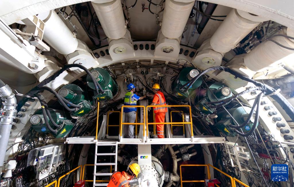 3月4日,中铁十四局工程作业人员在对盾构机后配套设备进行日常巡检。新华社记者 魏培全 摄
