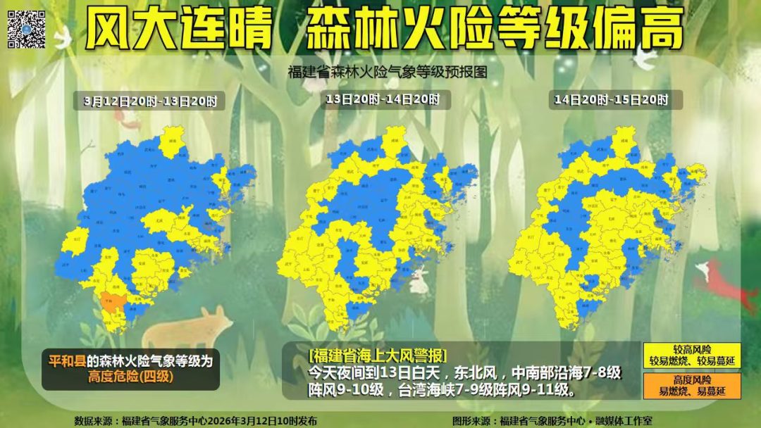 福建省海上大风警报,冷空气也使福建沿海大风不断增强。12日夜间到13日白天,东北风,中南部沿海7-8级阵风9-10级台湾海峡7-9级阵风9-11级。
