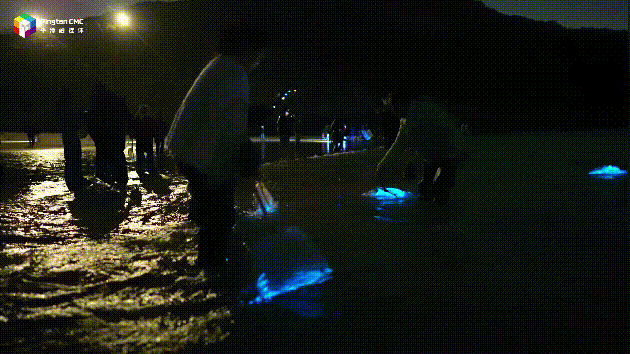 夜幕时分,海面上闪烁起神秘的蓝色微光,整片海域化作流动的银河,海岸边一拨拨“追泪人”共赴这场梦幻之约。
