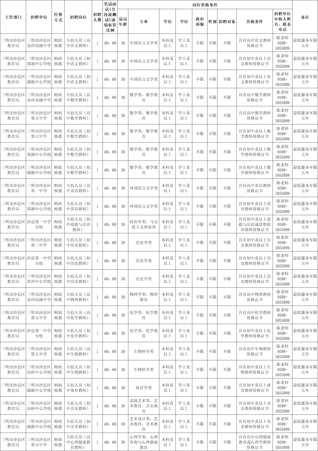 三明市沙县区公开招聘教师23名
