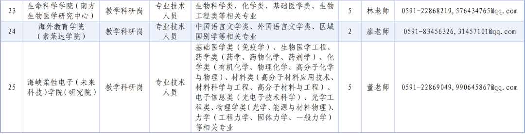 备注:以上专业需求栏括号中为重点招聘专业方向,但不限于此,其相关学科交叉专业符合条件也可应聘。