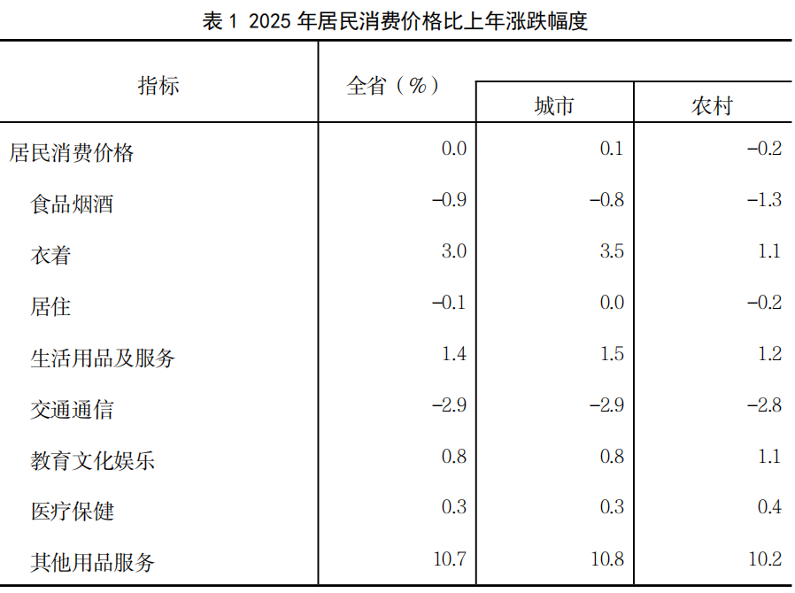 全年居民消费价格与上年持平。工业生产者出厂价格下降1.2%。工业生产者购进价格下降1.7%。农产品生产者价格下降2.5%。