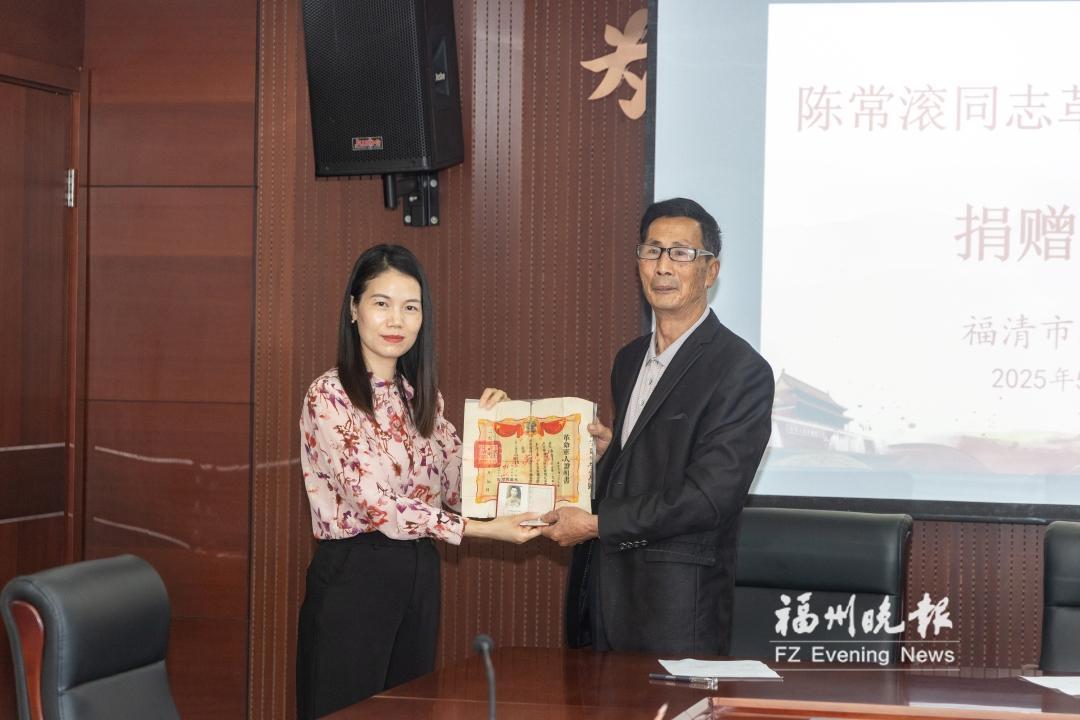 5月8日的捐赠仪式上,陈茂发郑重签署了档案交接文件,福清市档案馆为其颁发了收藏证书。他动情地说:“这张证明书记录了父亲的经历,也承载了那段波澜壮阔的历史。捐给档案馆,不仅是让父亲的荣誉得以延续,也是希望更多人了解那段历史,传承革命精神。”