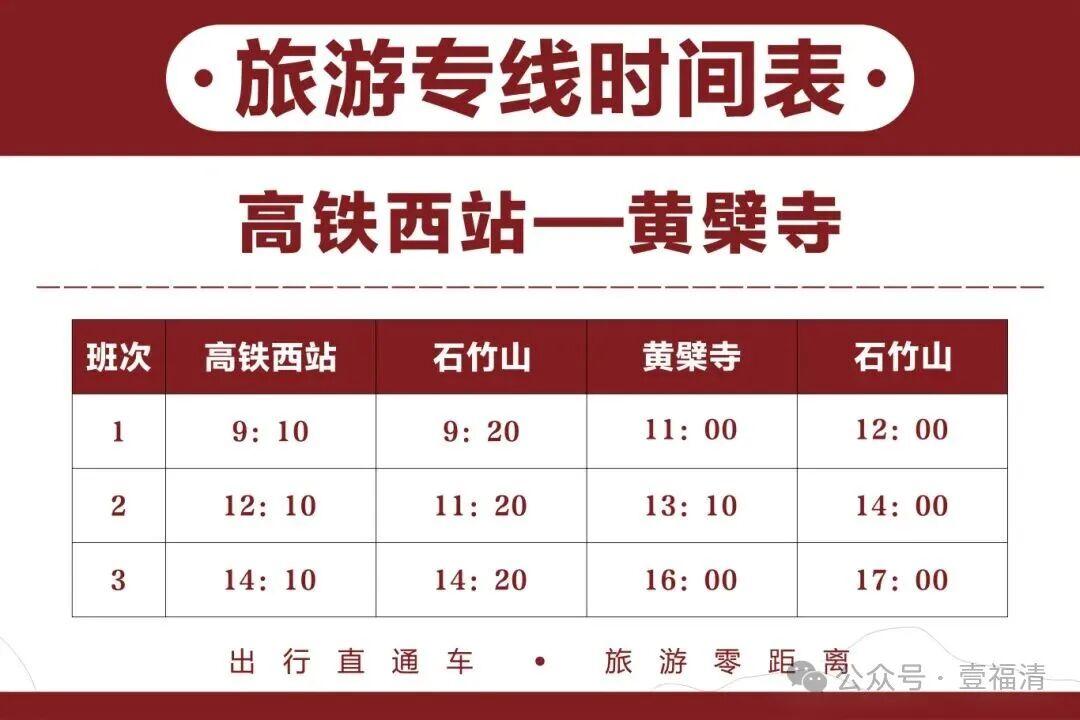 国庆假期将至,10月1日起,福州福清市更新开通5条旅游直通车线路,覆盖福清高铁西站、石竹山、南少林寺、黄檗寺、灵石山公园等热门景点。国庆假期(10月1日—10月8日)期间,乘车全程免费。