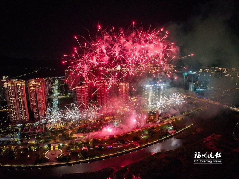 1日晚,一场以“焰舞福清 赏星悦目”为主题的国庆中秋焰火晚会在福清市市民生态休闲公园、龙江生态文化园同步上演。近40分钟的晚会点亮了玉融大地的夜空,为市民游客献上一场视听盛宴。