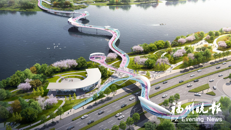 其中,跨龙江段全长约360米,桥面宽度6.5米至14.87米,采用钢管混凝土桥墩与钢箱梁结构形式,在保障安全性和耐久性的同时,以流畅舒展的线条勾勒出富有韵律感的滨江景观。跨北江滨路段主线长185.51米,同步配套建设便民梯道和无障碍坡道,充分满足不同人群的慢行出行需求。