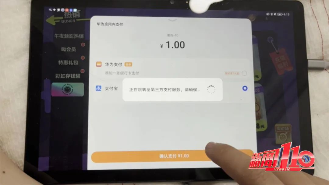 原来,张先生曾用华为平板电脑登录过支付宝账户,孩子点进游戏充值界面后,系统便会自动进入支付界面,孩子只要输入支付密码就可以完成充值。
