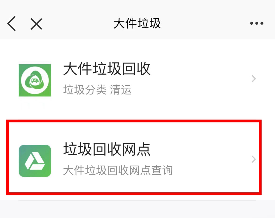 “垃圾回收网点”具有查询大件垃圾回收网点等功能。