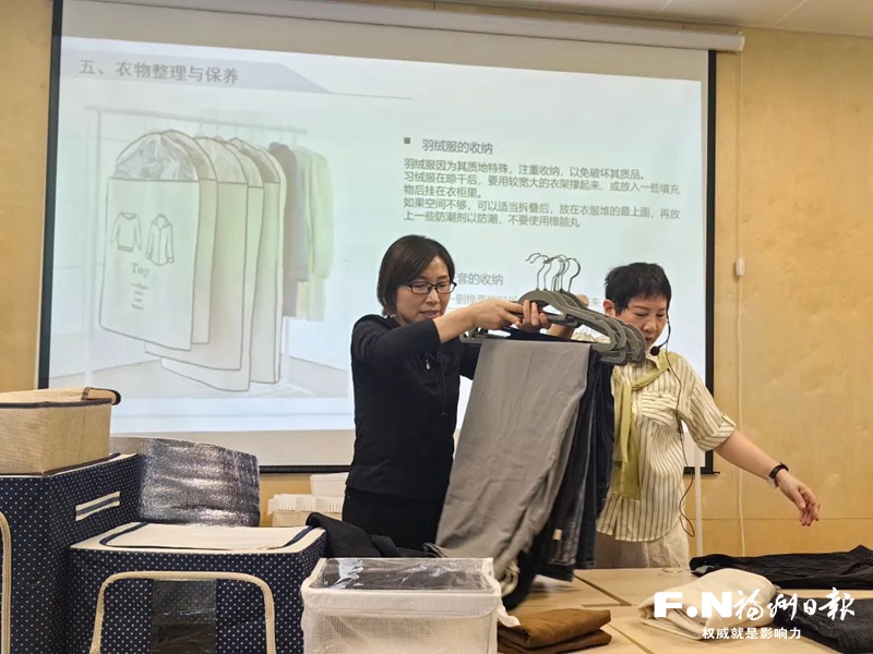 在近日鼓楼区妇联联合区人社局、省普慧众佳职业培训学校、鼓东街道树兜社区举办的区巾帼家政职业技能培训班上,30余名妇女群众参加了整理收纳学习并取得结业证书。培训采用线下实操教学与线上理论学习相结合的模式,在为期3天的线下课堂中,老师围绕衣物收纳、冰箱整理、收纳空间规划、手工旧物改造等内容开展实操教学,课堂互动气氛热烈。学员林女士告诉记者,家里有两个娃,东西总是堆得乱七八糟,“看着凌乱的家,心情怎能愉悦?所以一听说社区有这个培训,我第一时间就来报名了。”