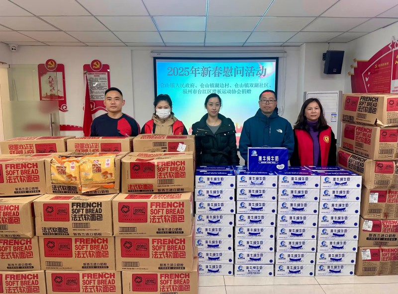 1月10日,仓山镇人民政府、仓山镇湖边村、仓山镇双湖社区联合爱心企业福州市台江区滑板运动协会组织开展“迎新春、送温暖”节前慰问活动,让辖区内的困难党员、低保群众、残疾儿童、独居老人及终日辛勤工作在第一线的保安、保洁员们度过一个快乐祥和、温暖幸福的春节。