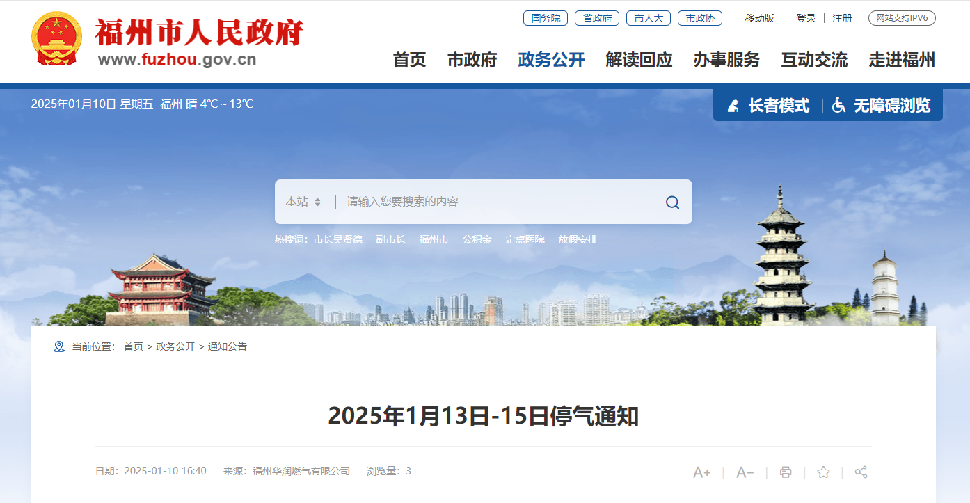 福州居民注意!1月13日—15日,这些小区即将停气,