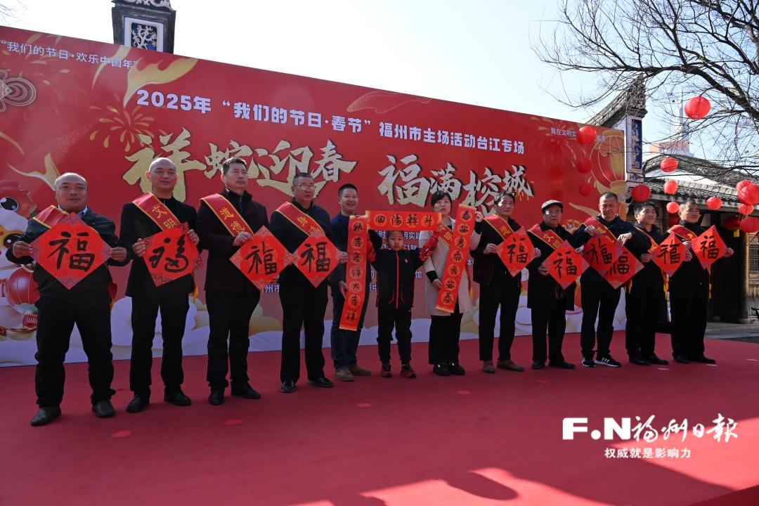 2025年“我们的节日·春节”福州市主场活动台江专场上,台江区道德模范、身边好人、文明家庭代表给榕城市民送“福”。记者 叶诚 摄