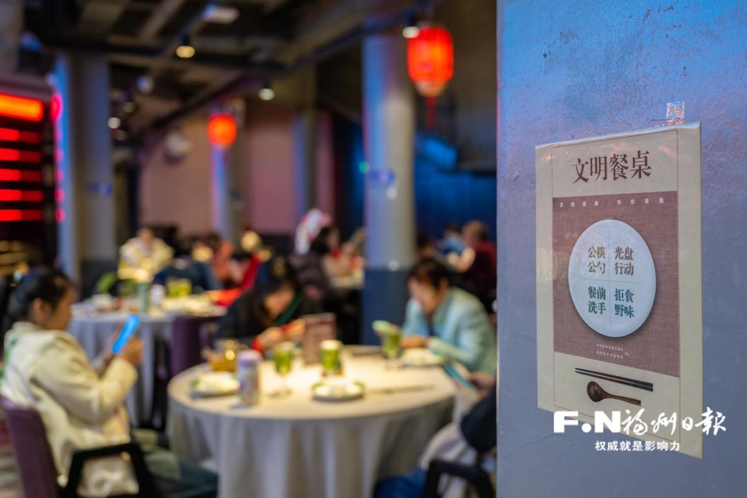 除了禁燃限放,福州还积极倡导“光盘行动”“文明餐桌”等文明风尚,引导市民树立勤俭节约的意识,杜绝“舌尖上的浪费”。春节期间,记者走访发现,福州市各大商圈餐饮店正持续推广“光盘行动”,福州各大餐饮企业也纷纷推出“小份菜”“半份菜”等服务,引导消费者理性点餐、文明用餐。