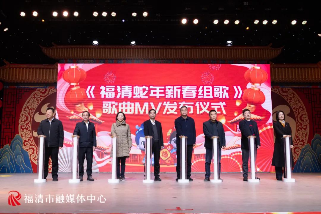 活动最后,与会领导嘉宾共同上台点亮启动台,标志着“福清蛇年新春组歌”歌曲MV正式上线发布,活动圆满收官。