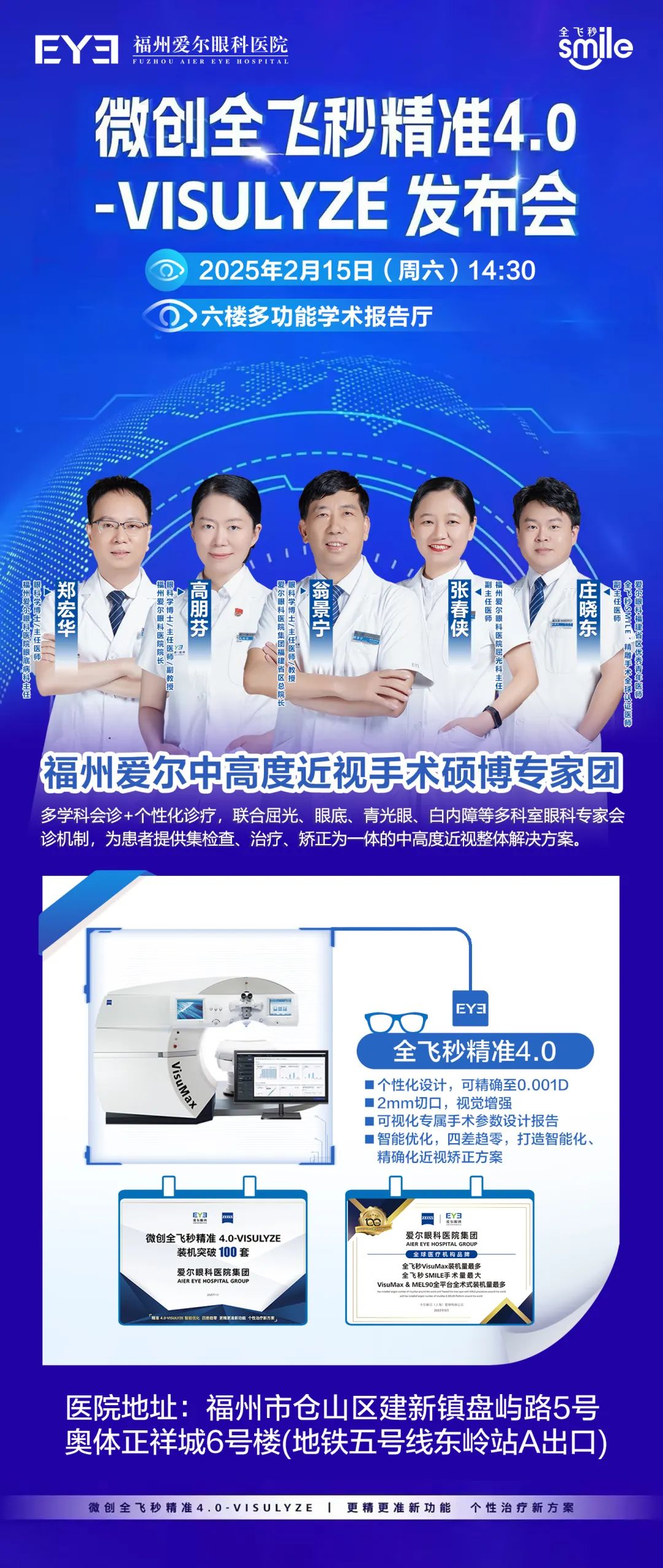 随着新技术的引进,许多近视的朋友纷纷咨询。对此,福州爱尔眼科医院认真回应。微创全飞秒精准4.0-VISULYZE发布会重磅来袭!