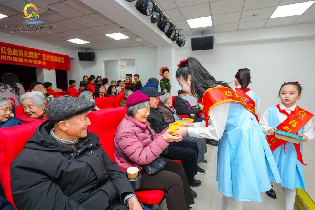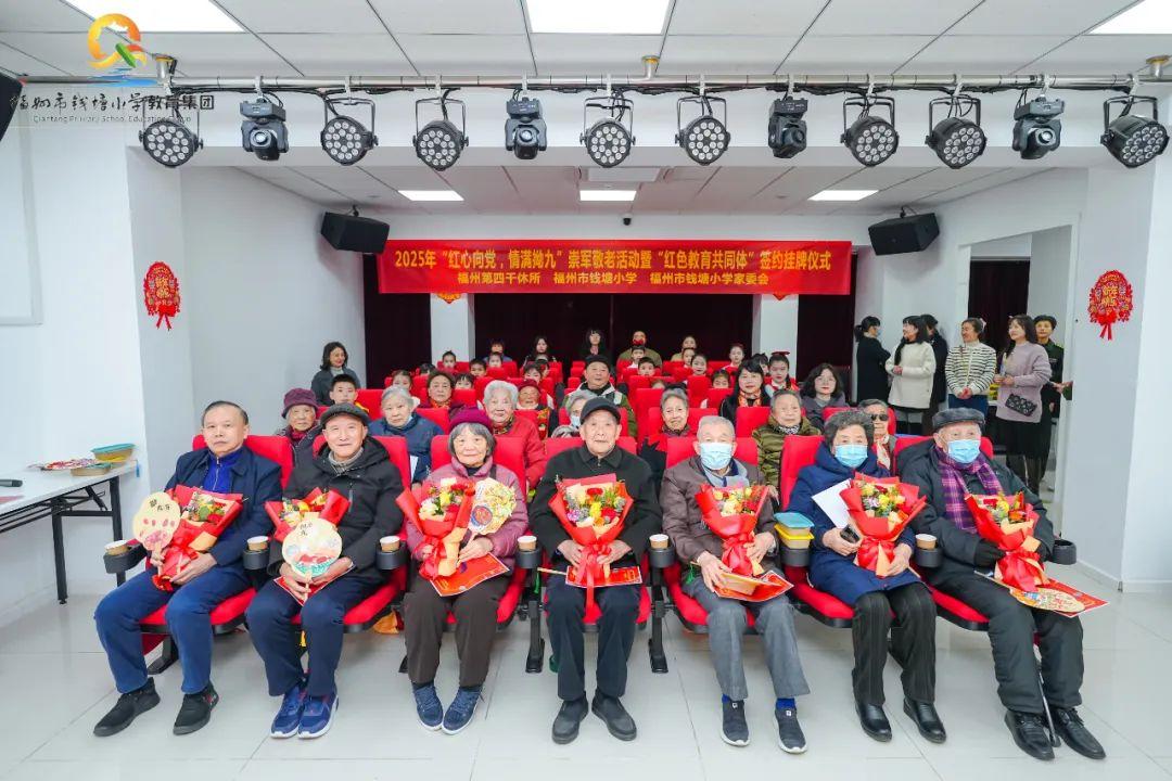 为深入学习党的二十大精神,传承红色文化,创建红色文化育人新模式,引导钱塘学子坚定理想信念,培育社会主义核心价值观,夯实成长的思想基础,2月25日下午,在福州特有的民间传统节日“拗九节”来临之际,福州市钱塘小学师生代表来到福州第四干休举办“红心向党,情满拗九”崇军敬老活动暨“红色教育共同体”签约挂牌仪式。